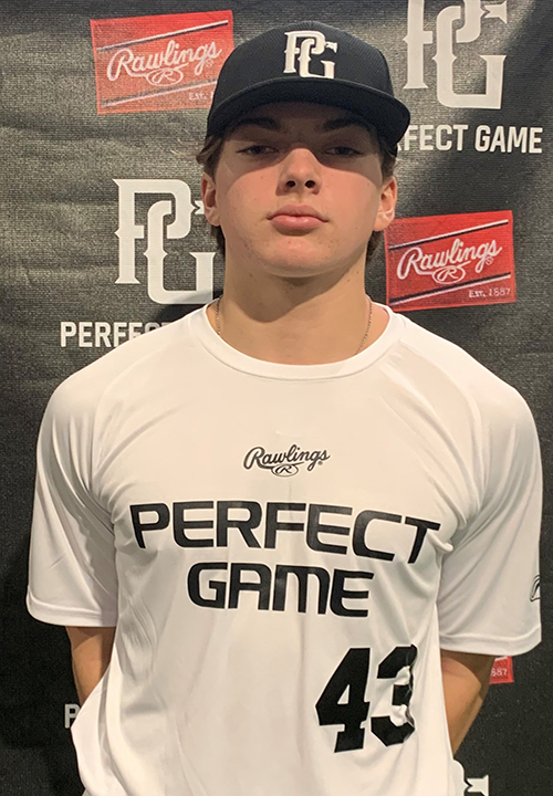 Simon Wilkinson is a 2024 RHP/3B with a 6-0 175 lb. frame from Zionsville, IN who attends Zionsville Community. Medium frame with athletic and projectable build. Righthanded pitcher, side-step to start with belt high leg lift, long stride downhill, throws from 3/4 arm slot and generates good arm speed/hip separation, generates plane on heater and can cut it, worked 81-86 mph, showed slider with tilt and good command of the pitch, this was a very good look at him and he projects really well as he continues gaining strength on his frame. Good student, named to 2022 Indianapolis Indoor Top Prospect List.
