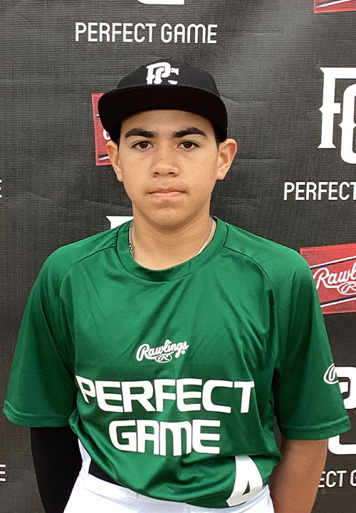 Eli Romero is a 2028 SS/RHP/C with a 5-5 130 lb. frame from Corpus Christi, TX who attends Calallen. Compact, wiry build with plenty of time to grow into his frame. Ran a 8.63 in the sixty. Infielder, good setup and showed a quicker first step. Ranges well for age with a quicker glove, shows pocket early. Good traits and transfer that stood out in age group, some softness to the hands. Right-handed pitcher, works from a cleaner three-quarter slot and worked clean inning. Filled the zone with a high-60s fastball and shorter downer curve he has great feel for. Left-handed hitter, open stance and bigger hanging leg load. Good intent in the path that he executes well. Solid liners to the middle of the field, put together consistent contact. Solid timing and rhythm and traits to work with on both sides. Excellent student.